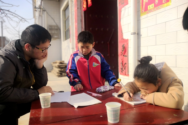 支教当天,时值初夏,清凉的微风伴随着阵阵鸟鸣扑面而来,志愿者们满怀着激动的心情踏上前往寨东村的路,期待着与寨东村孩子们的相会。这一天并不平凡,它终将成为志愿者和孩子们都无法忘记的美好回忆,支教现场的那一张张桌椅仿佛也不在普通,而是成为了连接志愿者与孩子们心灵的桥梁。支教活动开始后,孩子们同志愿者一起,认真地伏在桌上填写作业,有时遇到难题,孩子们会积极向志愿者们寻求帮助,最终,在大家共同努力下,难题都被逐一攻克,孩子们也在这种找寻结果的过程中感受到了学习的乐趣。繁忙的学习时光结束后,志愿者们组织孩子们开展了课后活动,看着孩子们那一张张天真烂漫的笑脸,志愿者内心倍感充实,纷纷想起了自己当年无忧无虑的时光,同时,志愿者们也在默默祝福这些孩子们能够健康快乐地成长。