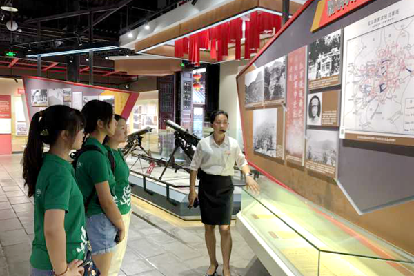 怀着沉重的心情,实践队来到旺苍县的“中国红军城”,跟随讲解员习爱玲的步伐,了解到了一段厚重的红色历史。从第一个妇女独立师、红色童子团的成立到我军历史上第一个正规水兵部队建成,红四方面军在红军的发展史上做出了重大贡献。当实践队队员问及此地旅游情况时,讲解员告诉实践队队员们在“中国红军城”成为国家4A级景区后,政府不断加大宣传力度,游客量逐年上涨,从最初年游客量的三四十万到如今半年就能达到三十多万,使得更多的人对这段震撼人心的红色历史充满探索的兴趣。