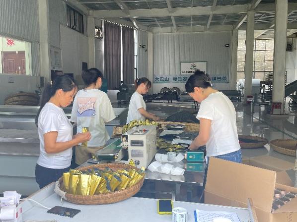 最后,实践队参观了芳悦公司的电商平台与农特产品直营店。公司通过线上直播销售茶叶、农特产品实现了小农户对接大市场,将茶叶及其他镇巴优质农产品销往全国各地,公司带领百余人从事茶叶种植,辐射带动周边200余农户参与茶叶生产,通过履行社会责任促进了乡村振兴。李茂芳讲到,一楼一凤 园艺学院的专家教授经常到茶园进行技术指导、经验传授,西农研究生助力团成员通过直播、电商等形式拓宽了销售渠道,西农的科技力量也进一步促进了镇巴当地茶产业的良性发展。