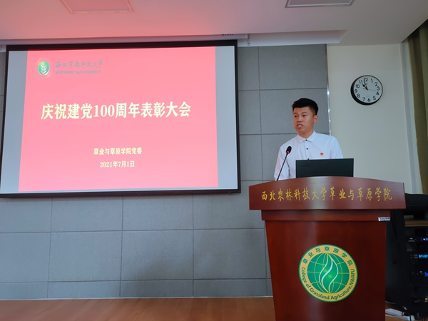 表彰大会上,校党委副书记、纪委书记陈红、院长呼天明、学院党委副书记兼副院长阮鹏、副院长杨培志,分别为优秀党务工作者、优秀教师党员、优秀学生党员和先进党支部颁发了荣誉证书。