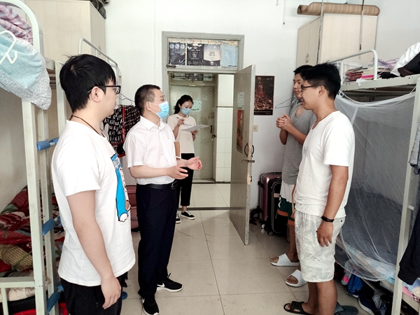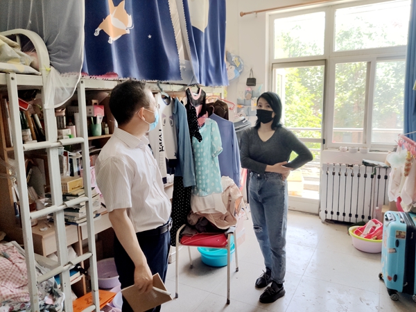 为深入了解返校学生的学习生活情况,发现并解决毕业生的需求和困难,6月3日,党总支副书记兼副院长阮鹏带领辅导员张士军、郭燕楠一行深入毕业生宿舍,进行走访和宿舍卫生检查。