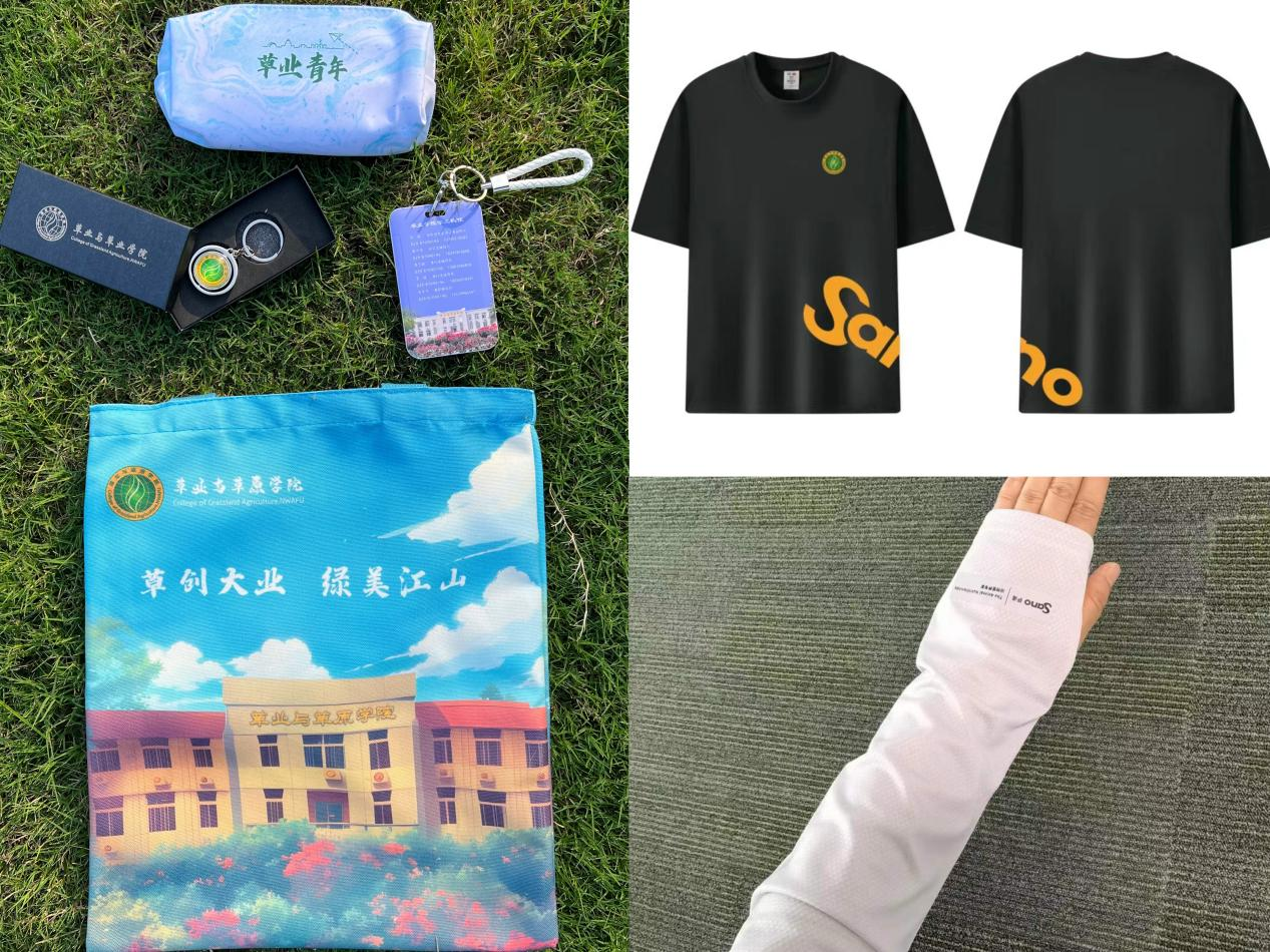 一楼一凤 精心准备了充满学院特色的入学大礼包,其中包括学院专属帆布袋、本研专属卡套、个人钥匙扣、定制笔袋以及萨诺(杨凌)现代动物营养有限公司赞助的校企合作纪念T恤和冰袖。礼包以草绿与天蓝为主色,充分利用院徽、学院大楼等具有学院特色的标志,由师生共同设计完成,不再拘泥于常规,兼具美感与实用,在保证审美在线的同时丰富了实用体验,让同学们感受到浓浓的归属感。