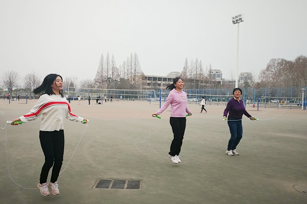 为了喜迎“三八”国际劳动妇女节,丰富学院教职工文化生活,增强女教工的身体素质,3月6日下午,学院在北校区篮球场组织女教工参加趣味跳绳比赛。全院女教职工参加了活动。