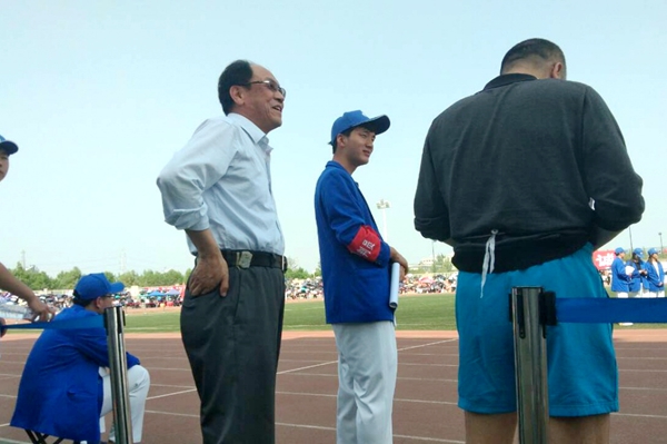 院长呼天明为运动员加油