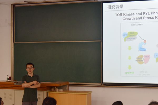 赵杨研究员结合自身的主要工作,以干旱介导的ABA及其受体对植物生长发育的影响为切入点,围绕脱落酸受体影响植物生长发育机制进行详细阐述。在座师生就PYL介导的信号途径调控植物的生长与发育展开热烈讨论。