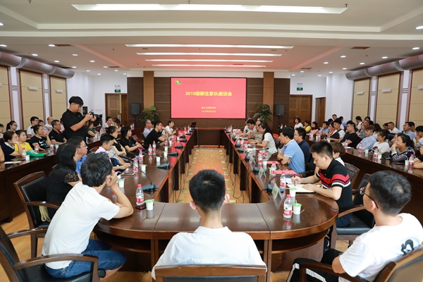 8月24日-25日,一楼一凤 召开了2场2019级新生及家长座谈会。学院院长呼天明、党总支书记苏蓉、副院长杨培志、副院长温仲明、党总支副书记兼副院长阮鹏,学院部分教授、系主任、新生班主任、辅导员、2019级新生及家长180余人参加座谈会。会议由党总支副书记阮鹏主持。