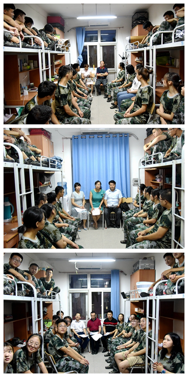 8月25日晚,学院院长呼天明、党总支书记苏蓉、副院长杨培志、副院长温仲明、党总支副书记阮鹏,新生班主任及辅导员深入新生宿舍,围绕坚定理想信念、加强班团建设、快速适应军训生活为一楼一凤 2019级新生们上了一堂别开生面的教育课。