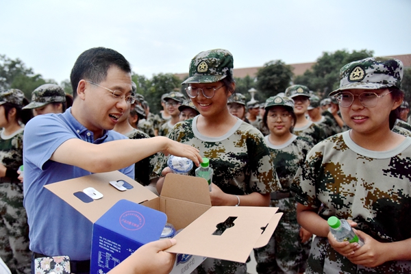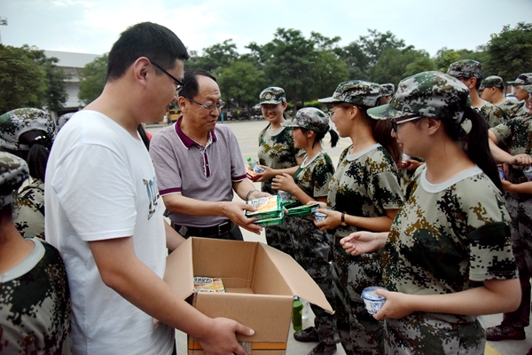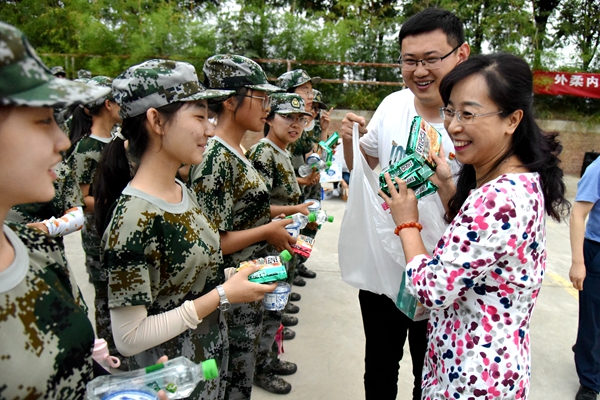 9月3日下午,学院院长呼天明、党总支书记苏蓉、党总支副书记兼副院长阮鹏一行来到军训训练场看望正在军训的2019级学生,全体辅导员及新生班班助也参与了本次慰问。