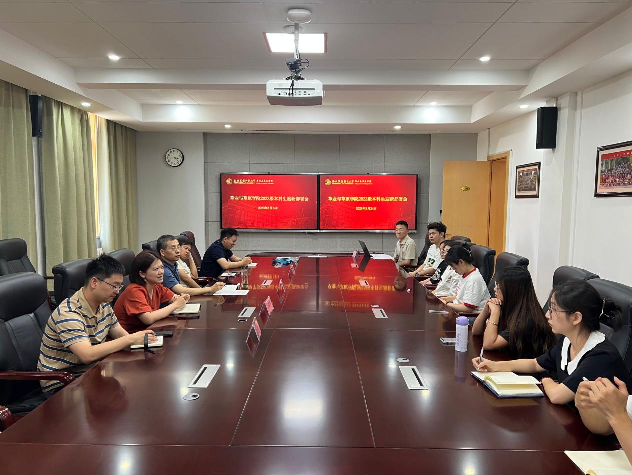 召开2023级本科生迎新部署会。学院党委副书记兼副院长阮鹏、新生班主任、辅导员、班主任助理以及迎新志愿者参加会议。