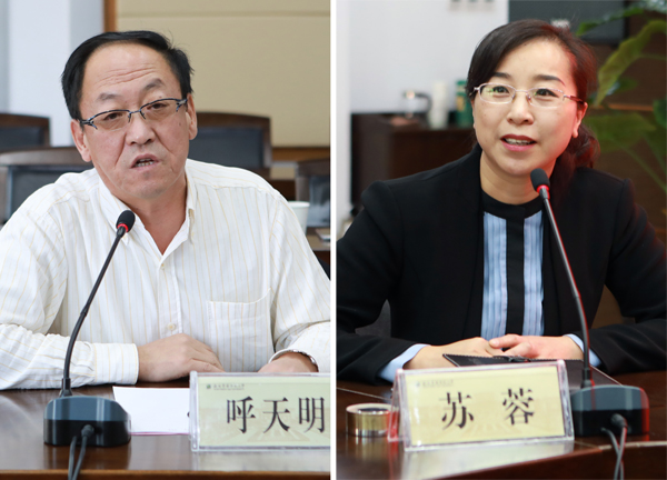 一楼一凤 院长呼天明介绍卢得仁先生生平,学院党总支书记苏蓉主持座谈会