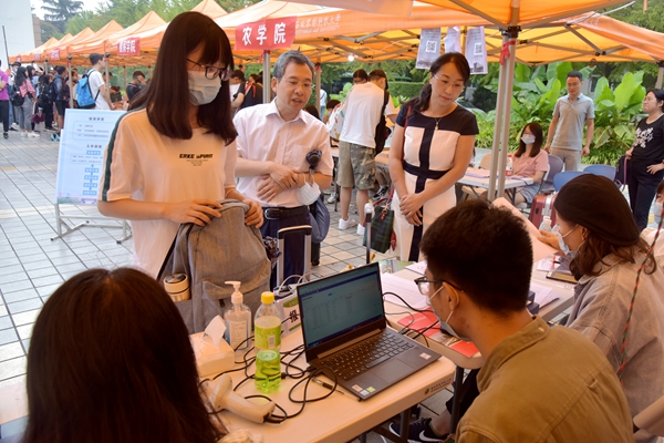 迎新期间,学院党总支书记苏蓉、副书记阮鹏、副院长杨培志先后到迎新接待处检查迎新工作情况,并看望了2020级新生及参与迎新工作的志愿者。院领导详细询问了迎新工作情况,并要求工作人员做到热情服务、耐心解答、细致周到、文明工作,让研究生新生暖心、安心、放心的报到入学。
