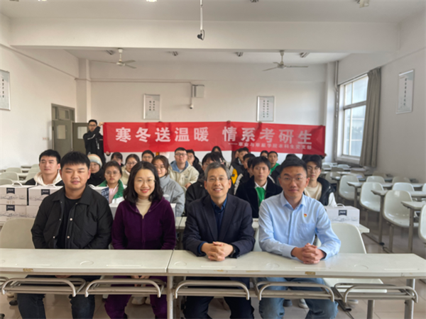 阮鹏副书记希望考研同学们坚定信心,保持良好的心态,劳逸结合,合理安排自己作息时间。阮书记强调,学院是同学们的坚强后盾,为同学们做好考研的后勤保障,近日温度的变化较大,同学们在备考的同时也要注重身体的健康,为最后的冲刺创造良好身体条件。